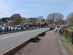 頂上から急坂を下って粥新田峠へ。ここからしばらく車道歩きが続く。途中の秩父高原牧場で、道端のベンチに腰掛けて、スタート受付で貰った栄養ドリンクを飲み、飴をなめて少しだけ元気回復。ソフトクリームは長い行列ができているので、今回もまあいいか。