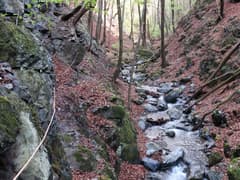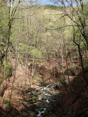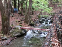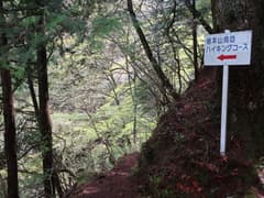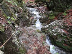 祭りでもあったのか、注連縄が張り渡された不死熊橋から沢コースに入る。一昨日、まとまった雨が降ったため、山道は湿って滑り易い。沢を見下ろすとドウドウと水が流れて、沢登りならばちょっと不安を感じるレベルの水量だ。