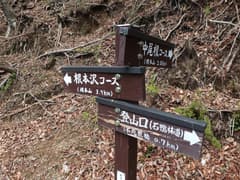 根本山の根本沢コースは、最近では2016年6月に歩いている。そのときは道迷いや滑落の危険を感じる個所がところどころにあって、やや荒れていたが、その後、根本山瑞雲倶楽部によって道標や危険個所へのロープの設置等の整備がなされ、さらに、江戸時代に根本山神社への表参道として賑わった表坂(男坂)ルートが整備されて復活したとのことで、ハイトスさんが2017年の4月と12月に歩いて記事をアップされている。以降、表坂を登ったというネット情報がだんだんと増えて、直近では4月29日にtancro氏がレポをアップされている。これに触発されて、GW6日目に表坂を登りに出かけてきました。