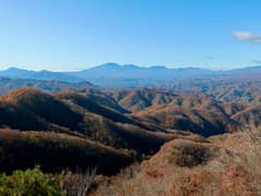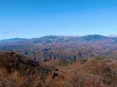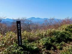 まず正面に、まだ少し雲がかかった草津白根山を望む。目を左(南)に転じれば、四阿山は雲に隠れ気味だが、湯の丸山から浅間山にかけての浅間連峰は、青空にくっきりとスカイラインを描く。その左には遠く八ヶ岳を望み、浅間隠山や菅峰も指呼できる。