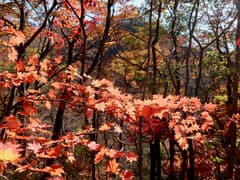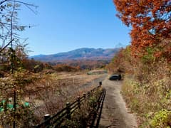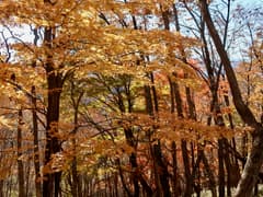 下山は往路をのんびりと散歩気分で戻る。天狗の踊場を過ぎた辺りの紅葉が見頃で、朝方は不足していた陽がたっぷり差して、良い色を出している。ゆるゆると下って、登山口に帰り着く。草津白根山はすっかり晴れて、頂上部の白いものも消えていた。