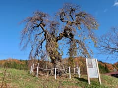 次は世立八滝だ。その前に世立集落に立ち寄る。世立は、松岩山西麓に拓かれた高台に民家が散在する長閑な山村だ。ふるさと活性化センター「よってがねぇ館」は開館していなかった。すぐ近くのしだれ栗を見に行く。樹齢250年余で、枝が奇っ怪に捻れて垂れ下がり、お化け屋敷の木のようだ。栗には珍しい姿だそうで、栗の中の傾奇者と言えよう(^^)