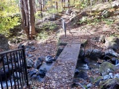 平坦な尾根を少し辿り、それから渓谷へ急降下すると、殺人(さつうじん)の滝という物騒な名前の滝がある(実際に人が殺されたとの伝説があるらしい)。手前の木が邪魔だが、中段から水が跳ね上がる見事なヒョングリ滝だ。八石沢川の滝はこれで終わりで、上流は平凡な河原となる。下流にはあと二つの滝があるそうだが、遊歩道からは見えない。