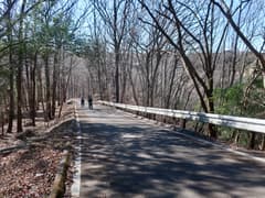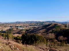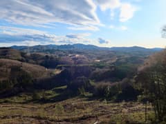 展望台には年配のご夫婦がいらっしゃる。普段着なので多分地元の方だ。ご挨拶して話を伺うと、お孫さんが受験なので、菅原神社に合格祈願に来て、ついでに展望台に立ち寄ったそうだ。また、山には車で上がって、ここまですぐとのこと。地形図を見ると、車道を下っても大した距離はない、ということで下山は車道を下ることにする。往路の急な道を下らずに済むので一安心である。あと、那珂川の上を飛んでいるトンビのような鳥を指して、サシバと教えて頂いた(後日調べると、タカの仲間だそうだ)。