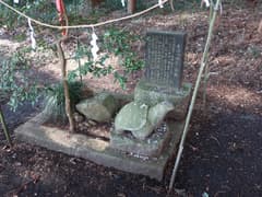 参道は杉並木に囲まれて、行く手の丘へ一直線に向かっている。途中に神亀の石像と神社の由来を刻んだ石碑がある。碑文によると、源義家が奥州に向かう途上、この地で戦勝を祈願すると大亀が現れ、義家は瑞兆と喜んだ。祈願が成就して凱旋後に社殿が造営され、康平七(1064)年に亀岡八幡宮と称するようになったとのこと。なかなか由緒ある神社だ。
