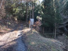 松倉山入口には「松倉山自然環境保全地域」の案内看板がある。これによると、松倉山観音堂周辺に残るカシ林(ウラジロガシなど暖帯照葉樹林)は分布の北限に近いとのこと。ここで左に分岐する車道に入り、長閑な山村風景を見ながら山裾を辿って、菖蒲沢の谷間の未舗装林道に入る。直ぐに「←林道 参道→」との新しい道標があり、右の参道に入る。