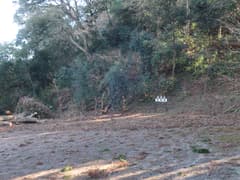 下山は松倉山駐車場から林道をのんびり下る。大した距離はなく林道・参道分岐に下り着き、後は往路を戻る。ご一家はちょうど家に着いたところで、お疲れ様でした、と声をかける。子供のうち数人は、また遊び始めていた。元気が余っているなあ(^^;)