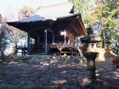 関東ふれあいの道の「安楽寺→」の道標で右に山道を分けて、正面の参道石段を登る(後日調べると、ここは関東ふれあいの道の「20 風薫る山里のみち」のコースの一部となっている)。太い注連縄が張られた石鳥居があり、脇に「村社熊野神社」の標柱が建つ。石鳥居を潜って鬱蒼と繁る森の中の石段を登ると、熊野神社の社殿に着く。
