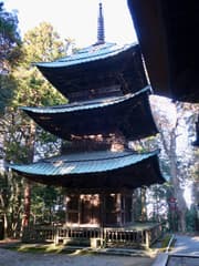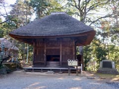 緑深い樹林に覆われた参道石段を登る。両脇の大木は椎とのこと。境内に登り着くと藁葺き屋根の楼門が建ち、左には三重塔がある。何れも室町時代の特徴を残しているとのこと。楼門を潜ると本堂が建つ。前面の一間にはお守りの授与所があるが、準備中。まだ朝早いせいか、参拝者はいなくて静か。