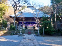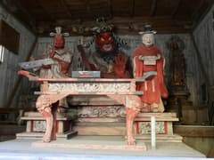 境内右手には、これも藁葺き屋根の閻魔堂が建ち、堂内に大きくて真っ赤に塗られた閻魔像を祀る。「笑い閻魔」というそうだが、やはり恐ろしげだ(なお、堂内には奪衣婆像もあったそうで、知っていれば見たかったが、残念ながら見逃した)。