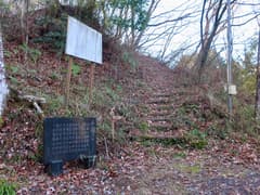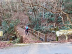 鎌倉山には、大瀬登山口に架かる橋で渓流を渡って取り付く。すぐ下流には白糸の滝と称する滑滝がかかる。最初から急斜面の階段道の登りとなる。丁寧にジグザグを切って、良く整備された歩道が続く。ここも関東ふれあいの道の「22 アユおどる清流のみち」のコースの一部になっている。