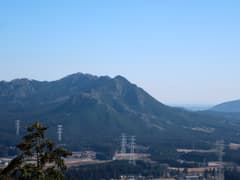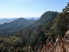 東峰は赤松に囲まれているが、三方に眺めが開ける場所がある。東は岩場の上から古賀志山と多気山の眺めが良い。北は一段下がった岩場の上から、これから辿る市境稜線と、その先の小倉城山が見通せる。