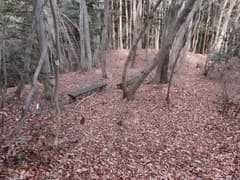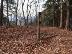ここにある「小倉城山」の説明板によると、小倉城は天文年間(1532〜1555)、日光山の桜本坊方印昌安の築城と伝えられているとのこと。頂上にもベンチがあるが、少し先の堀切で隔てられた円形の広場にもベンチがあるので、そちらで小休止。あとは駐車地点まで下るだけだ。ブロックチョコを食べて小腹を満たし、さて下山にかかるとしますか。