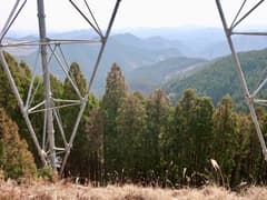 送電鉄塔に占拠された頂上なので、趣きがやや削がれるのは否めないが、明るく開けているので居心地は悪くない。展望は東面に開け、三峰山(粟野)から谷倉山、三峰山(星野) にかけての山並を遠望する。