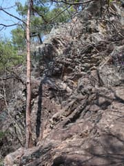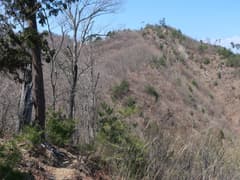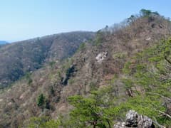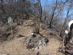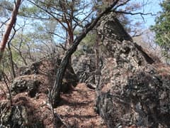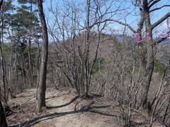 露岩が多く明るい尾根歩きが続く。ちょっとした岩稜もあり、変化に富む。早くもミツバツツジが(一株だけだが)咲いている。アカヤシオもポツリポツリ見かける。