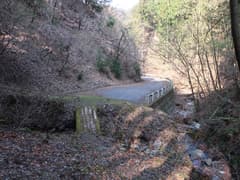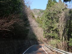 やがて水流が現れ、小さな滑滝の脇を下ると、野山林道の終点に着く。あとは舗装された林道をダラダラと下る。途中で道端に駐車を見たので、野山林道は特に車両通行止めにはなっていないようだ。