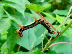 前回と同じく、茂倉沢入口付近の路側に車を置く。道端の草藪にはでかい毛虫がいて、わしゃわしゃと葉っぱを食べている。黒白赤橙の彩りが鮮やかな初めて見る毛虫なので、写真を撮ろうとレンズを近づけたら、そっくり返ってプルプル震え始めた。後日調べるとフクラスズメという蛾の幼虫で、カラムシの葉を餌としている。毒は持たないが敵が近づくと首を振って威嚇し、身を守るらしい。辺りを見回すとあちこちにいた。