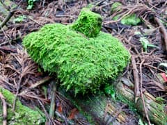 滑滝の上流は再び平凡な沢となり、水際の踏み跡を拾ってゆるゆると沢を遡る。途中、道端にびっしりと苔に覆われた四角い石がある。参照したネット上の記録とは様子が異なるが、これが石灯籠の傘だろうか。