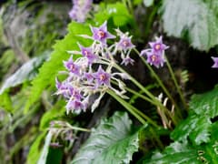 水のない沢を登ると直ぐに浅い窪の急斜面となり、ここをひたすら直登する。窪に点在する岩場にはイワタバコが咲いている。行く手にシカの姿を見かけたが、写真が撮れる距離に近づく前に逃げていった。