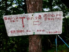 最低鞍部から少し登った地点に「↓一色線(黒川ダム)菱公民館方面」の道標が残っている。黒川ダムからのルートも数度歩いたことがある。黒川の谷を見おろすと、少し下の作業道まで見通せるが、そこまでの斜面はススキに覆われ、このルートは廃道化している。