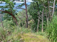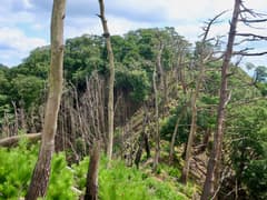 山火事に起因する点で複雑な気持ちになるが、頂上からの南面の眺めは相変わらず良い。木陰に入れば微風が吹き抜けてそこそこ涼しい。腰を下ろして、パンとペットボトル飲料の昼食を摂る。自宅からの近さ、行程の手頃さから言うと散歩の山なのだが、その割には奥山の雰囲気もあり、眺めも良いので、続けて訪れても楽しめている。