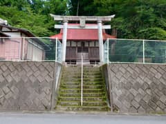 あとは未舗装の作業道をのんびり下る。途中の橋の欄干に「旭澤林道」のプレートあり。数戸の民家が点在する集落を抜けると桐生川左岸の車道に出、左に塩之宮神社が建つ。