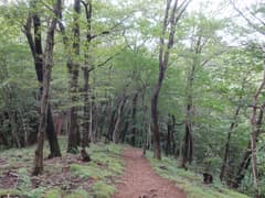 昼食後、縦走路をさらに西へ進む。菅塩峠で左に(前回歩いた)菅塩沼への道を分けて、直進。良く整備された縦走路を辿る。