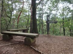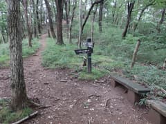 合流点から縦走路を西へ辿る。縦走路は幅広く、両側の下生えも広く刈り払いされて蜘蛛の巣もなく、気持ち良く歩ける。程なく高壺山の頂上に到着。ベンチに腰掛けて、ペットボトルのお茶とパンの昼食を摂る。