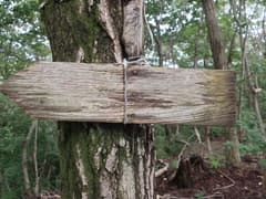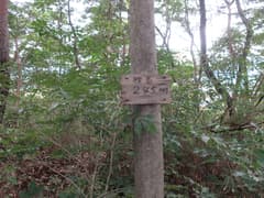 縦走路上の日向山頂上に引き返すと、もう一つ古い道標があることに気が付く。文字は掠れて「唐沢山…歩く会」とのみ読める。この道標は八王子丘陵縦走の際も見た記憶がある。元は「唐沢山(石尊山)桐生倶楽部歩く会」と記されていたらしい。当時とは縦走路が整備されて様変わりしているので、昔の物が痕跡でも残っていると懐かしい。