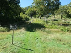 今日は良く晴れて青空が広がり、秋らしい爽やかな陽気だ。ゲレンデの一角が毛無山登山口で、「至る毛無山(1,650m) 遊歩道風ごうろコース」との道標が立つ。ゲレンデの草地に明瞭な道型があり、これを登り始める。