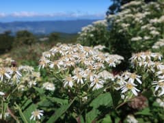 草に覆われたゲレンデに、短い芝で覆われた道型が通じ、良く整備されている。花の少ない時期だが、綿毛の実を付けたヤナギランや、ちょうど花を咲かせたゴマナが鑑賞できる。澄み切った青空の下、涼風に吹かれて開放的な草原を歩くのは気持ち良い。
