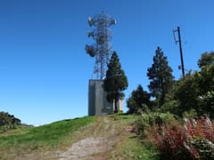 短い急坂を登ると、リフト降り場とその奥の電波塔が見えてくる。この辺りでS&Sは結構お疲れの様子。左からもゲレンデを合わせ、ダート道を辿って、毛無山の頂上に建つ電波塔に向かう。もう一つのリフト降り場があり、2組程のハイカーさんが昼食休憩中。