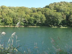 関田山脈の上に登り着くと、小さな凹凸が入り組む複雑な地形が広がる(断層活動に伴うケスタ地形というものらしい)。凹地の一つに満々と水を湛えてひっそりと桂池が佇み、そのほとりの路側スペースに車を置く。もう1台車があり、ご夫婦が帰り支度をしている。話を伺うと黒岩山に登って来たそうで、この先少し下った所が登山口と教えて頂く(池沿いの道は通行不可)。