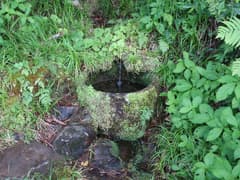 S&Sは毛無山でお疲れなので池周辺の散歩に留め、私だけ黒岩山に向かう。少し先に登山口があり、信越トレイルの案内看板がある。ありがたいことに冷たい清水がコンコンと湧く水場(太郎清水と道標に記載)があり、ここでタップリ水を飲んでおく。