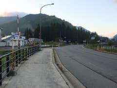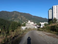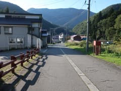 周囲の山にも徐々に陽が当たり始め、ほぼ定刻にバスが到着。乗客はソロハイカーさんが二人のみ。二人とも平標登山口バス停で下車。車窓からチラリと見えた平標登山口の駐車場には、既にかなりの車がある。苗場スキー場の前を通り過ぎ、浅貝の街並みに入って、浅貝バス停で下車する。運賃は290円也。街並みといっても専らスキーで栄えているところだし、朝早いこともあって、表には人っ子一人見かけない。