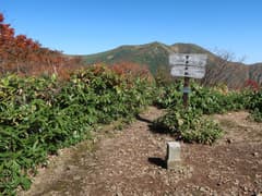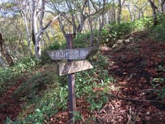 三角山からの展望を楽しんだのち、縦走路を平標山に向かう。縦走路は笹尾根を辿り、大源太山の西斜面の樹林に入って山腹を巻く。巻き道の途中に道標があり、大源太山への道が分岐する。ここから大源太山を往復する。