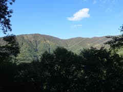 ゆるゆると下ってなだらかな鞍部から尾根の登りにかかる。林床に笹が繁茂しているが、良く刈り払いされた山道が続く。樹林の切れた箇所からは、稲包山から上ノ倉山にかけての上越国境稜線が眺められる。
