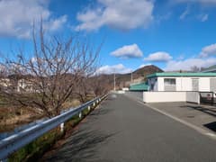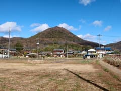 神社から発って、県道を足利市街へ少し戻る。切り通しを北西からの寒風が吹き抜けて、落ち葉がクルクルと舞い上がる。尾名川沿いの道に入り、大坊山の小粒ながら端正な三角形に向かって歩く。右手には大きくて新しい校舎が立ち並ぶ毛野小学校、奥には毛野中学校が見える。休日だから児童生徒の姿はなくて静まり返っている。
