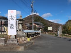 広い車道に出て住宅街を北上。これから辿る大坊山から大小山にかけての山並みをグルリと見渡す。低く近くに見えるので、今日の行程は楽勝かなと思う(が、実は意外と歩き応えがあった)。「←鹿島園」の看板で左折、駐在所の先で右折し、あとは道なりに大坊山に向かう。途中に大山祇神社の石灯籠があり、「初詣」の看板が立てられている。元旦は参拝客で賑わいそうな感じ。「毛野大坊山ハイキングコース案内図」の標識もある。