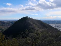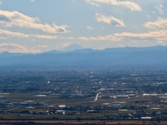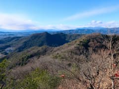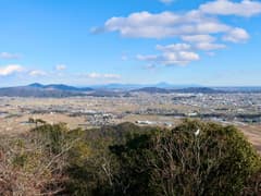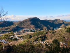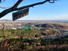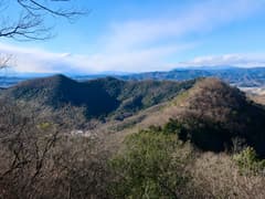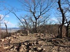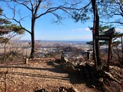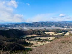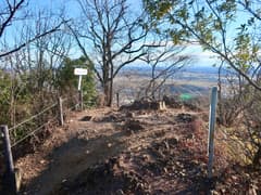 時間帯が遅いせいか、頂上のハイカーさんは一人だけ。展望は360度に開けて素晴らしい。西には大坊山を望む。いやー、結構歩いて来たなー。東には佐野市街や晃石山、三毳山、その向こうに加波山や筑波山の山並みを遠望する。南は関東平野を一望。目を凝らすと冠雪した富士山が薄らと見える。