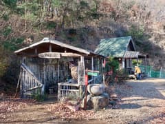 頂上から手摺にロープが張られた急坂を下る。シルバーコースとの合流点には「←鉱山山頂より大坊山へ 足利鉱山」と記された道標がある。このすぐ下、開けた左斜面に山頂番屋がある。スタッフの方が一人来て居られた。前回は通過したせいか記憶は定かでないが、建物が増えて立派になっているような気がする。展望デッキがあり、そこのベンチをお借りして、パンとペットボトル緑茶の昼食を摂る。日陰で雨水が溜まった桶には厚い氷が張っているが、斜面が風を遮っているので、日向に居ればそう寒くはない。目の前には越床峠から鳩の峰へ至る足利・佐野市境尾根が横たわり、奥には山王山のドーム形の頂が覗いている。仄かに良い香りがするなと思ったら、ロウバイが咲いていた。