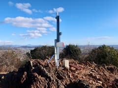 頂上の直下にNHKの小さな電波塔があり、その先の小鞍部で右に山道を分ける。鞍部からちょこっと登ると東に眺めが開けた岩場があり、「足利百名山第65座三足富士」の標識がある。未踏の足百の二つめをゲット。新田山から僅かな距離しかなく、何故この2座が選定されたか、ちょっと不思議。三足富士は別名、浅間山(せんげんやま)というそうなので、富士山関係の宗教モニュメントがあるのかもと思って探してみたが、特になかった。
