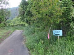 最初のヘアピンカーブに「平沢2Km やまびこ会→」の看板があり、左に分岐する車道に入る。幅の狭い車道で、杉林に覆われた山腹をトラバースして行く。やがて民家が現れ、切り開かれた斜面にやまびこ共同農場の他、数軒の建屋が点在する。見上げる鳩ヶ峰の稜線は結構高い。ここが平沢の集落だ。