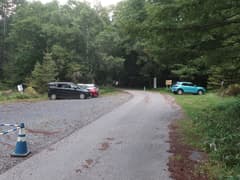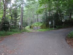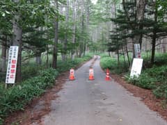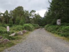 光徳入口から裏男体林道に入り、カラマツ林と笹原の中の細い舗装道を上がって、梵字飯場跡の駐車場に車を置く。既に駐車が4台。車の外に出てもアブはいない。先日の武尊山とは大違いだ。この先の道は駐車禁止となっており、ロードコーンで通せんぼされている。
