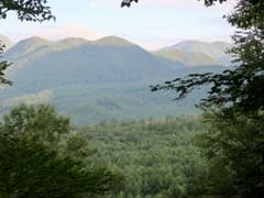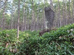一休みしたのち、南へ、野州高原林道を下る。林道と言っても荒廃して路面は石ゴロゴロ、軽四駆以外の車両の走行は無理で、山道とあまり変わらない。樹林に覆われ、展望に乏しい。途中、「大真名子コメツガ希少個体群保護林」という看板がある。「原生林に準ずる亜高山性針葉樹林で、コメツガが優先し、オオシラビソ、シラビソが混在し、学術上及び森林施業上の考証として貴重な保護林です。」とのこと。確かに針葉樹林は見事だ。