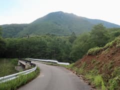 巴橋を渡り、左回りのカーブとなって湯殿沢橋に差し掛かると、正面に大真名子山が見えて来る。少し先で林道分岐となり、左に太郎山への道を分ける。