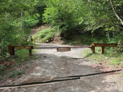 平坦な樹林を抜けると、草地とガレの平坦地となって開けた富士見峠に着く。ここで実質的な山歩きは終わりで、あとは駐車地点まで長い林道歩きが残る。直進すると帝釈山、左は旧栗山村(現日光市)野門への道だ。どちらも一度歩いてみたい。
