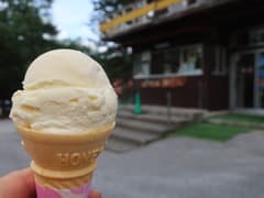 帰りはまず光徳温泉日光アストリアホテルに立ち寄る。しかし、日帰り入浴は15:00まで。とっくに過ぎていました、残念。せっかくなので、光徳牧場の売店でアイスクリームを買って賞味する。ここはリゾートで、観光客が多い。