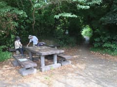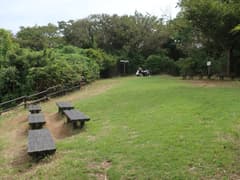 帰りは尾根上のトレイルを辿り、途中の関谷奥見晴台に立ち寄ってみる。こちらも芝生の広場となって北東に展望が開けるが、見えるのは手前の緑が生い茂る丘陵で、金沢区市街や海はほとんど見えない。展望台との名称には少々偽りあり、だな。ベンチもあり、年配のおじさん4人がテーブルを囲んで宴会で盛り上がって居られた。楽しそう。