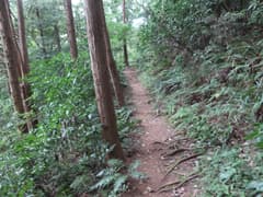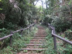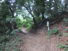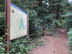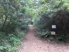 さらに平坦なトレイルを辿る。樹林に覆われ、左側は小さな谷となっていて、市街地のど真ん中とは思えない程、山らしい雰囲気がある。行き交うハイカーさんも結構多い。尾根上のトレイルに合流して直進。程なく右に大丸山への階段道が分かれる。